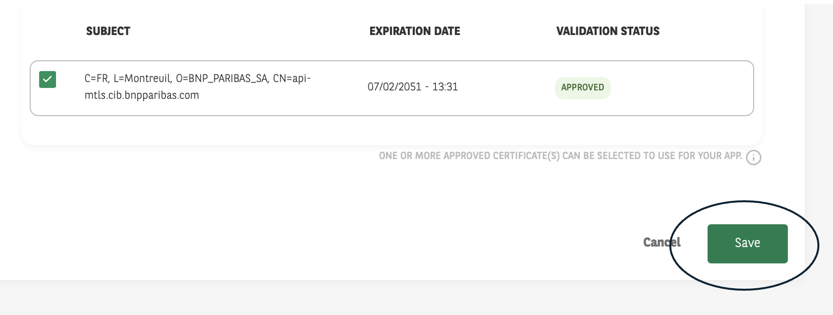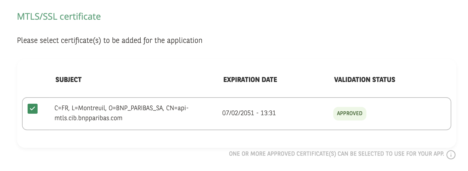 (Optional) In the case the app you want to subscribe requires a certificate: